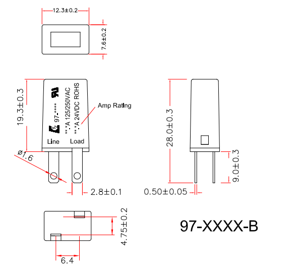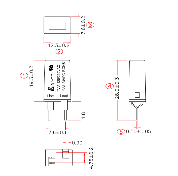 額定電流(rating):0.8A-15A 輸入電壓(Input Power):12VDC/32VDC 50-60Hz 耐電壓強(qiáng)度(Withstand voltage strength):1500VAC/1min,漏電電流≤0.5mA (1500VAC/min,the leaked current is less than≤0.5mA) 絕緣電阻(Insulation Resistance):500VDC1Min≥100MΩ 額定短路能力(Rated short-circuit capacity):125VAC/1000A,250VAC/1000A 額定通斷能力(Rated breaking capacity):6倍額定電流(6 times rated current) 復(fù)位方式(reset):自動(dòng)復(fù)位(Auto Reset) 復(fù)位時(shí)間(Reset Time):60s"內(nèi)回復(fù)(Within 60s") 脫扣特性(Tripping characteristics) 測(cè)試環(huán)境溫度(The test environment temperature):25℃±3℃ 額定電流200%(200% of Ratcd Currcnt):2-50s" 內(nèi)脫扣(2-50s" Seconds Trip) 額定電流150%(150% of Rated Current):一個(gè)小時(shí)內(nèi)脫扣(Trip within 1 Hour) 額定電流100%(100% of Rated Current):保持不脫扣(Hold,No Trip) |