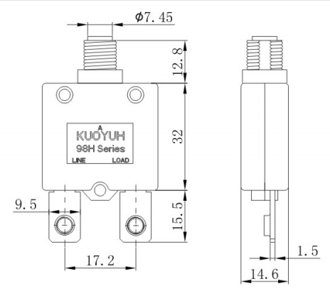 額定電流(rating):40A-80A 輸入電壓(Input Power):125VAC/250VAC/32VDC 50-60Hz 耐電壓強(qiáng)度(Withstand voltage strength):1500VAC/1min 漏電電流≤0.5mA(1500VAC/min,the leaked current is less than≤0.5mA) 絕緣電阻(Insulation Resistance):500VDC1Min≥100MΩ 額定短路能力(Rated short-circuit capacity):125VAC/1000A,250VAC/1000A 額定通斷能力(Rated breaking capacity):6倍額定電流(6 times rated current) 復(fù)位方式(reset):手動(dòng)復(fù)位(Manual Push Reset) 復(fù)位時(shí)間(Reset Time):60s"內(nèi)回復(fù)(Within 60s") 脫扣特性(Tripping characteristics) 測(cè)試環(huán)境溫度(The test environment temperature):25℃±3℃ 額定電流200%(200% of Ratcd Currcnt):6-45s" 內(nèi)脫扣(6-45s" Seconds Trip) 額定電流150%(150% of Rated Current):一個(gè)小時(shí)內(nèi)脫扣(Trip within 1 Hour) 額定電流100%(100% of Rated Current):保持不脫扣(Hold,No Trip) |